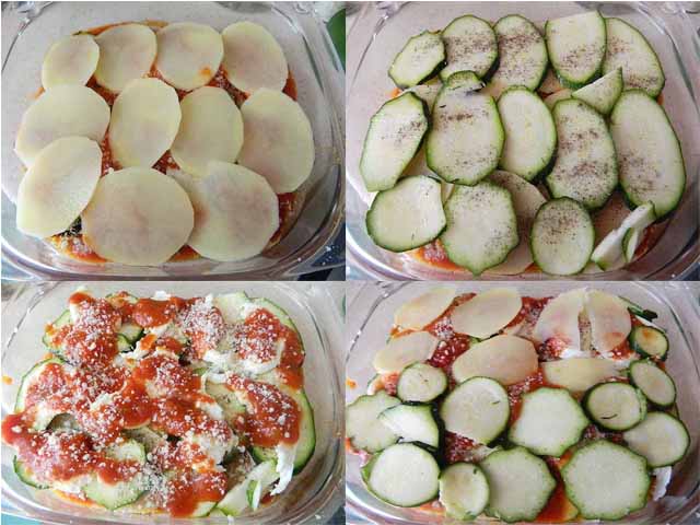 ricoprirle con le zucchine, quindi salare e pepare.