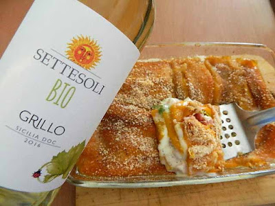 Naturalmente io ho accompagnato la Parmigiana di Peperoni con un ottimo bicchiere di vino bianco Grillo Bio delle Cantine Settesoli