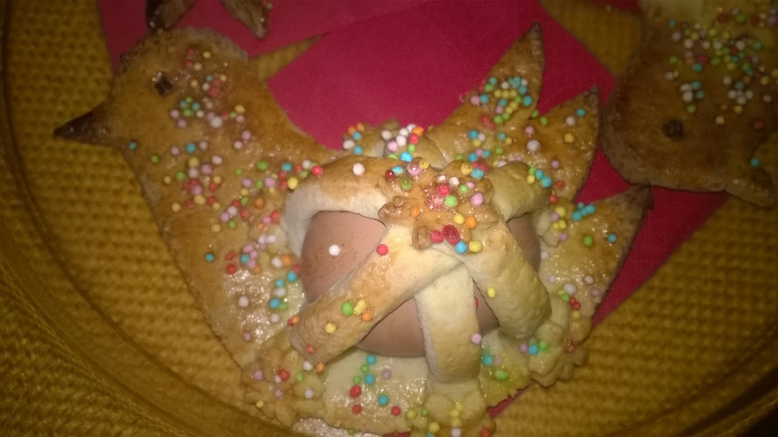 Se le cassate di ricotta rappresentano un dolce “obbligatorio” per la tradizione pasquale, nella provincia di Ragusa, non si può non fare per i bambini di casa, la colomba con l’uovo. Da quando ho memoria, non ricordo una Pasqua senza: anzi per la verità, malgrado venisse preparata prima, la si consumava il lunedì dell’Angelo, durante la classica scampagnata con amici e parenti. La mia è una famiglia molto numerosa (i fratelli di mio padre erano 8 e quelli di mia mamma 5) per cui potete immaginare le baraonde di noi piccoli quando, in questa occasione, ci si ritrovava insieme. Ci si confrontava le colombe o le borsette (per le femminucce): a chi era venuta bruciata, a chi con la testa storta, a chi gli si era rotta la coda, chi ce l’aveva con due uova e chi con uno, ecc…