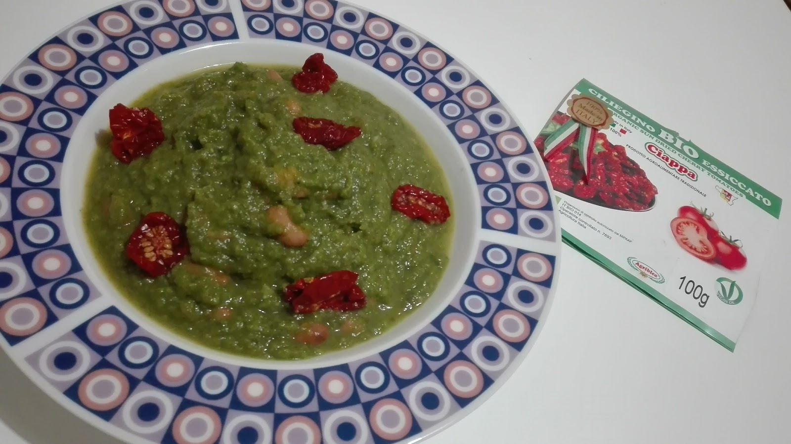Impiattare spolverando con il parmigiano grattugiato, per decorazione qualche ciliegino secco AGRIBLEA e qualche fagiolo borlotto intero.