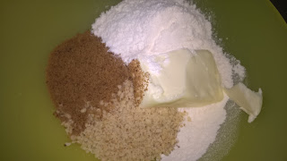 Per la crema : 200 g di mandorle tritate private della buccia, 500 ml di acqua, 50 g di amido di riso, 80 g di zucchero. Frullo le mandorle con un po’ dell’acqua prevista calda, in modo da ottenere una crema. Aggiungo il resto dell’acqua, l’amido e lo zucchero; faccio sciogliere bene, metto sul fuoco e faccio addensare.