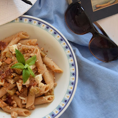 Intanto però, visto che queste parole mi hanno ricordato le vacanze di parecchi anni fa trascorse a Corfù, non posso non portarvi in Grecia con una ricettina veloce, estiva ma piuttosto nutriente che ben si presta per pranzi o cene in terrazza in compagnia di amici magari, con cui ridere spensieratamente guardando il sole tuffarsi nel mare e assaporando una piacevole brezza che accarezza la pelle, muove i capelli e gioca a gonfiare ampi ed esotici tendoni bianchi trasformandoli in vele.