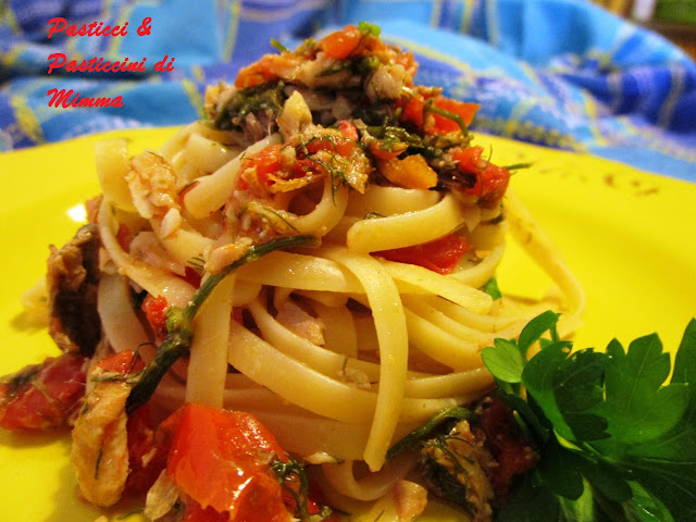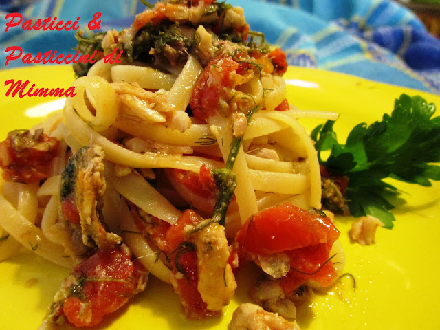 - quando la pasta sarà al dente, scolarla bene e spadellarla con il condimento di pesce