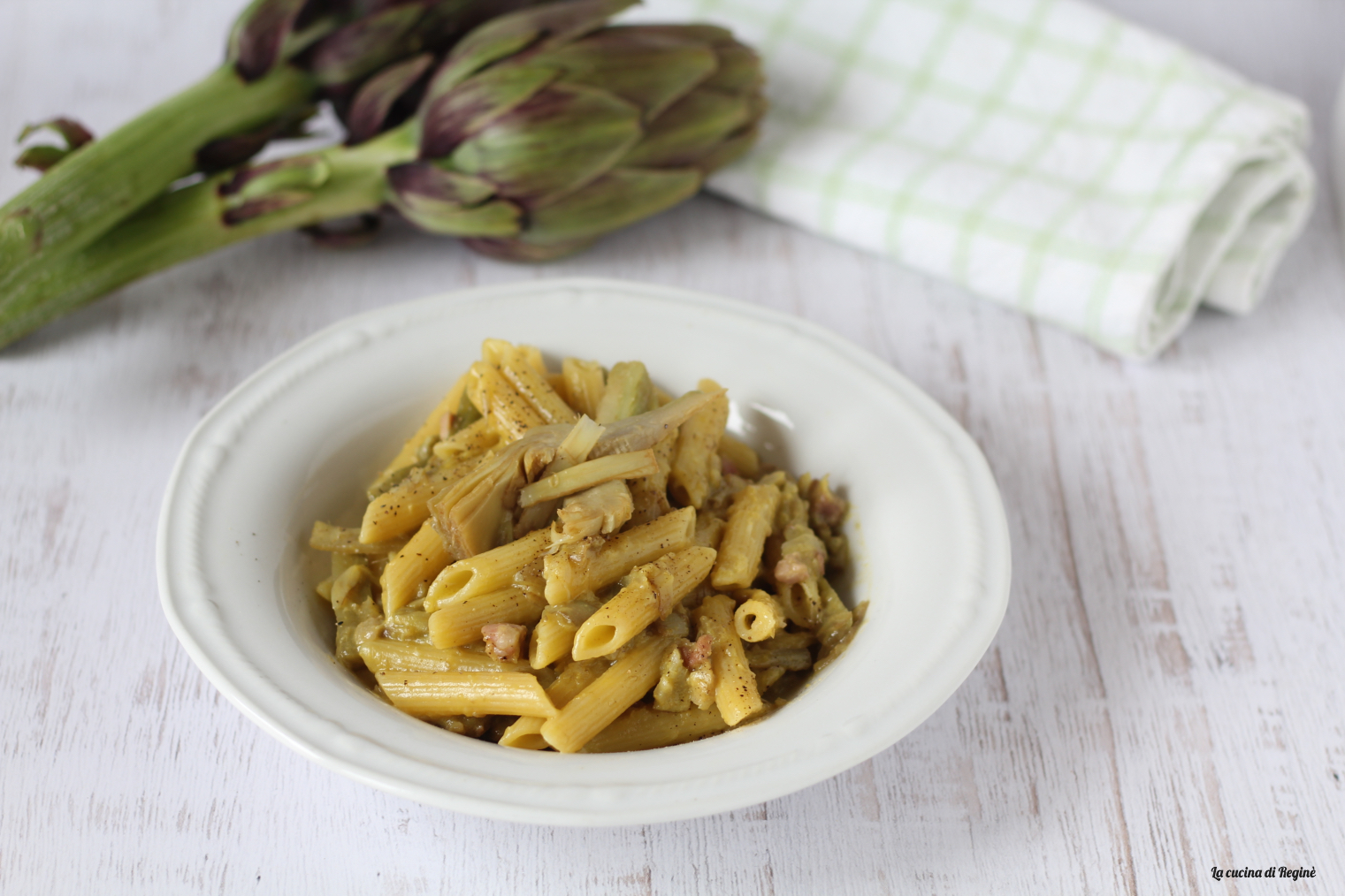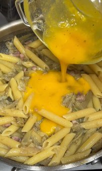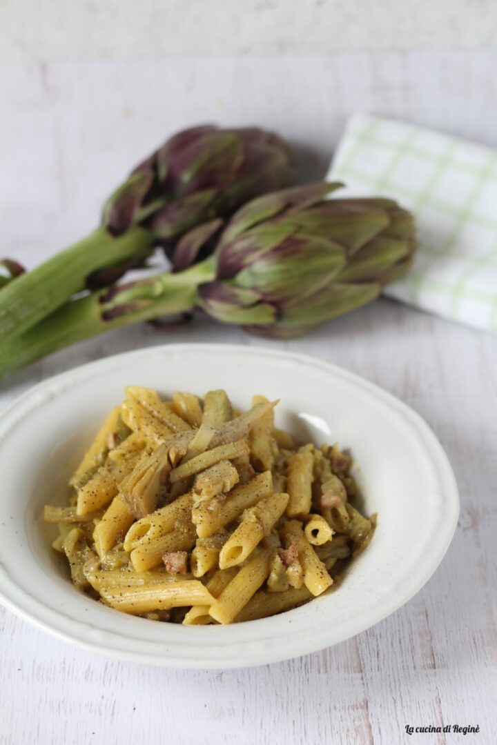 Pasta con carciofi, pancetta e uova