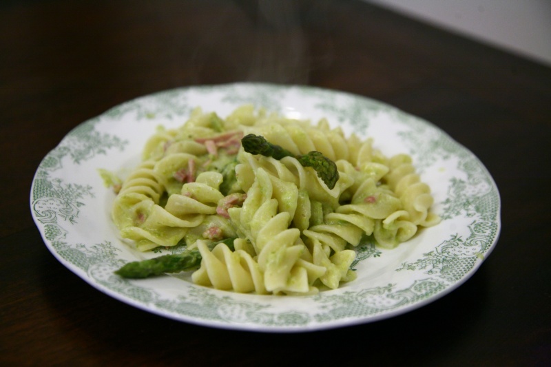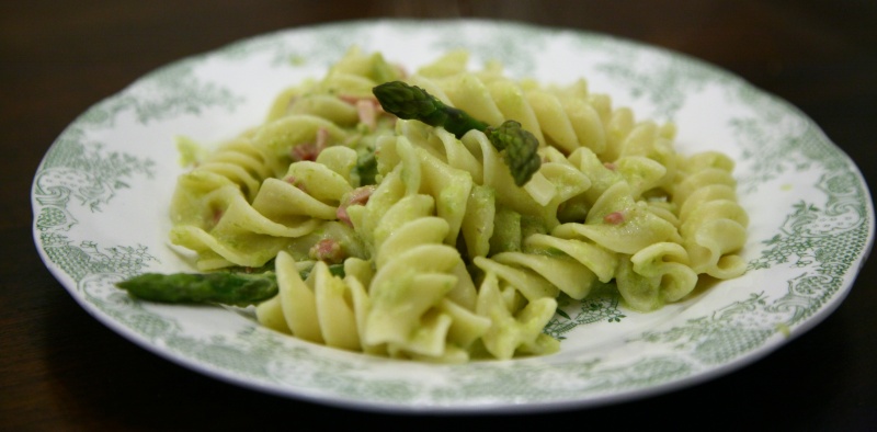 Ero indecisa come utilizzarli, normalmente li mangio banalmente con burro e formaggio o con l’uovo. Questa volta ho voluto preparare una pasta, mi piaceva l’idea delle punte di asparago verdi nel piatto.