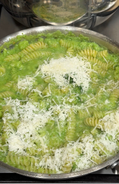 Nel frattempo porta di nuovo a bollore l’acqua dei broccoli, aggiungi il sale e lessa la pasta. Quando è al dente, trasferiscila direttamente nel tegame con il sugo di broccoli. Fai saltare la pasta per un paio di minuti, quindi aggiungi una manciata generosa di pecorino grattugiato, mescolando bene per ottenere una mantecatura perfetta.