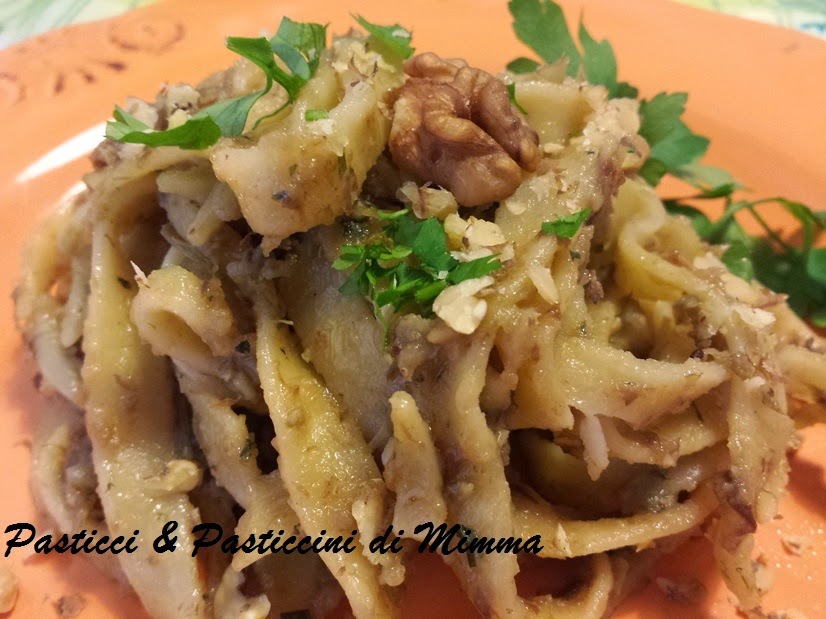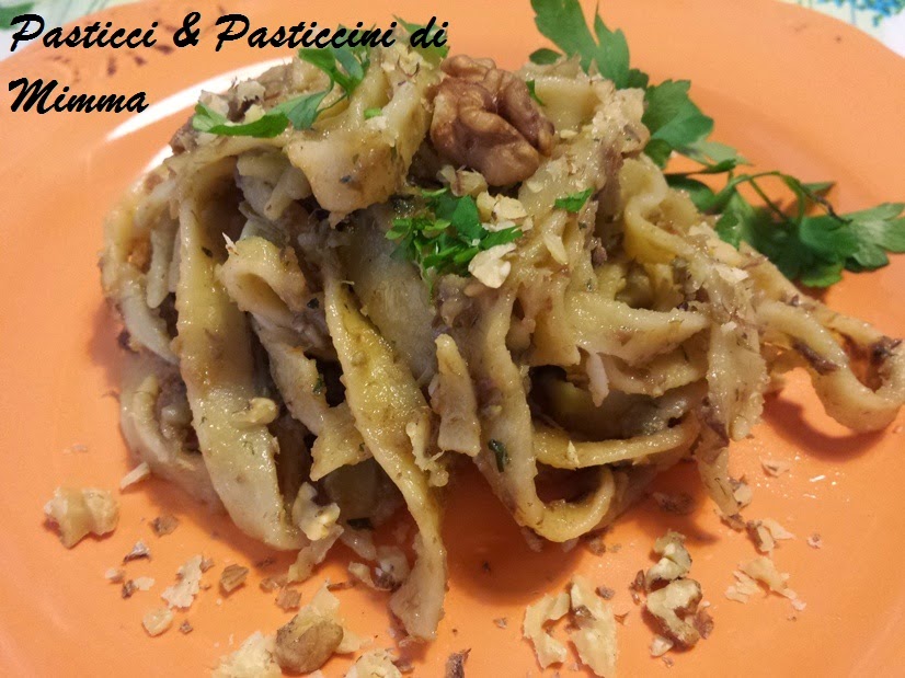 - impiattare e guarnire con prezzemolo fresco e gherigli di noci tritati e , a piacere, con formaggio grattugiato
