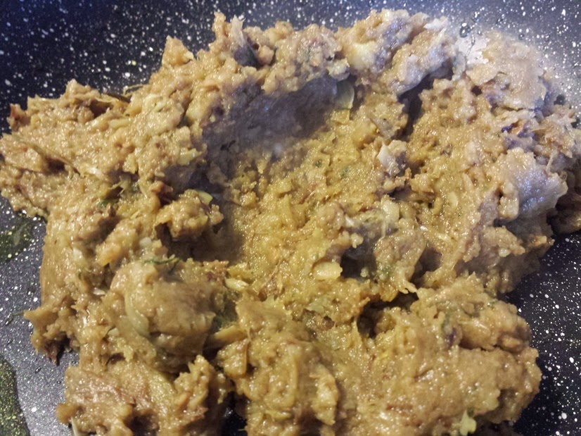 - quando il condimento sarà cotto, frullarlo in un mixer (io nel Bimby) sino a ridurlo in purea e rimetterlo nella padella dove è stato cotto
