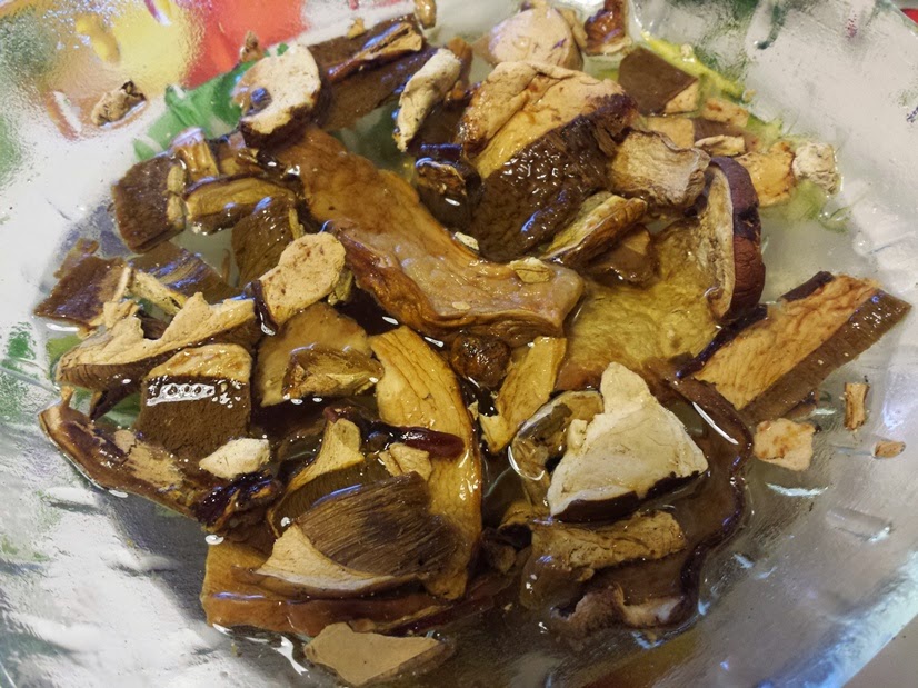 - ammollare i funghi secchi in una ciotola con acqua calda