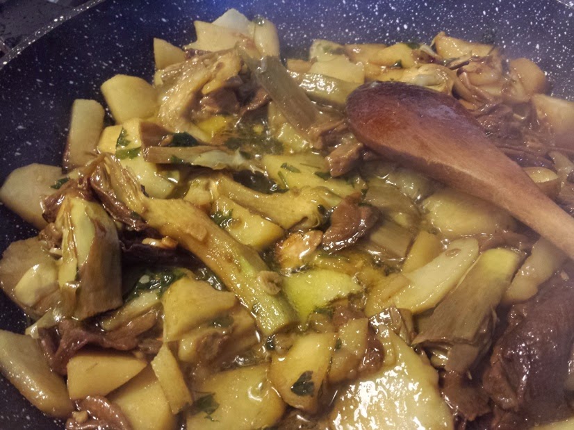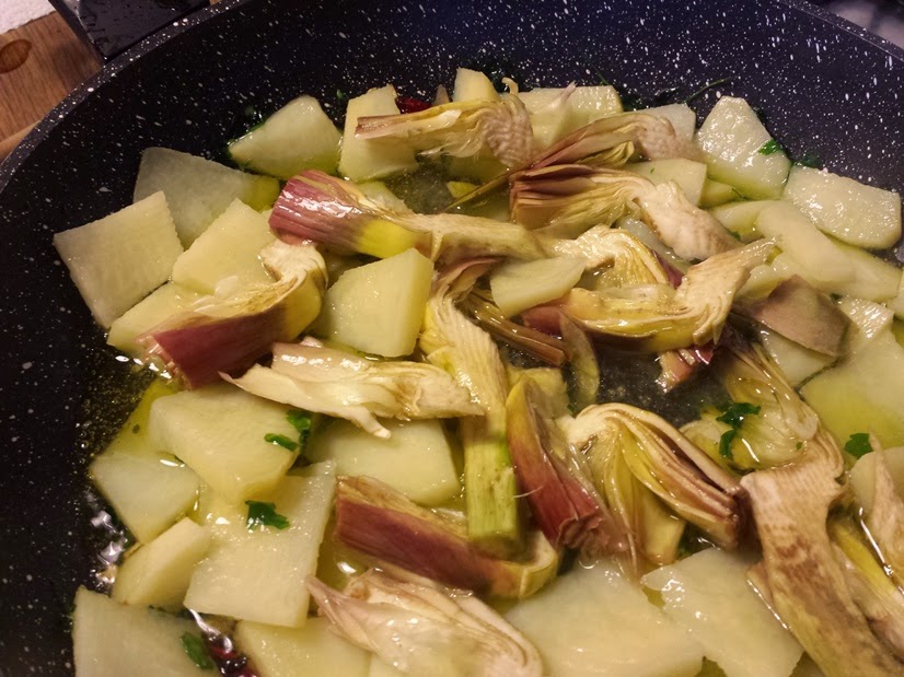 - aggiungere i carciofi scolati e mescolare per 2 minuti