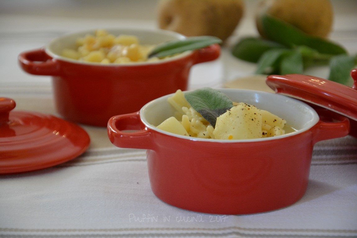 La ricetta della pasta e patate che vi propongo è liberamente tratta (ossa copiata ^_-) da una puntata di Cuochi e Fiamme di Simone Rugiati della scorsa settimana e ve la presento servita in cocottine rosse…perchè le adoro ^_^
