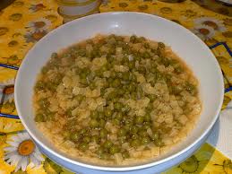 PROCEDIMENTO : Fate soffriggere il cucchiaio di strutto, o equivalente olio extravergine d’oliva, 1 cipolla di media grandezza, la costa di sedano, lo spicchio d’aglio , che poi toglierete . Lasciate cuocere lentamente e quindi aggiungete 300 gr di piselli sgranati ( o quelli surgelati ) e lasciateli insaporire bene nel soffritto con sale e pepe per circa 15 minuti. Portate intanto a ebollizione 1 litro e mezzo di brodo e versatelo sui piselli, aspettate qualche minuto, e quando il brodo ricomincerĂ a bollire aggiungete i quadrucci di pasta all’uovo possibilmente freschi, altrimenti vanno bene anche quelli secchi. Lasciate cuocere la pasta e servite con abbondante parmigiano…. BUONISSIMA…..