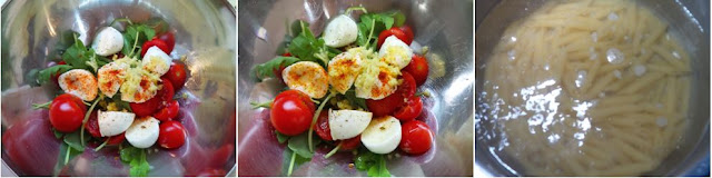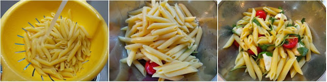 Scoliamola al dente a passiamola sotto un getto di acqua fredda per fermarne la cottura e raffreddarla quindi uniamola al condimento ed amalgamiamo. Lasciamo riposare ed insaporire per un’ora prima di servire.
