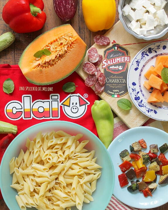La PASTA FREDDA con SALSICCIA CASARECCIA CLAI, MELONE, VERDURE GRIGLIATE e PRIMO SALE è un pasto ideale per le giornate in cui il caldo non ci lascia tregua.