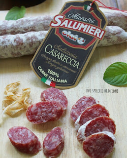 Io ho scelto di aggiungere questa SALSICCIA nel mio piatto poiché si sposa molto bene con le verdure, il primo sale (un formaggio delicatissimo) ed il MELONE.