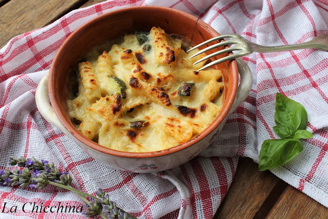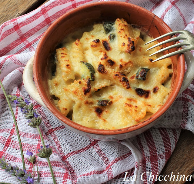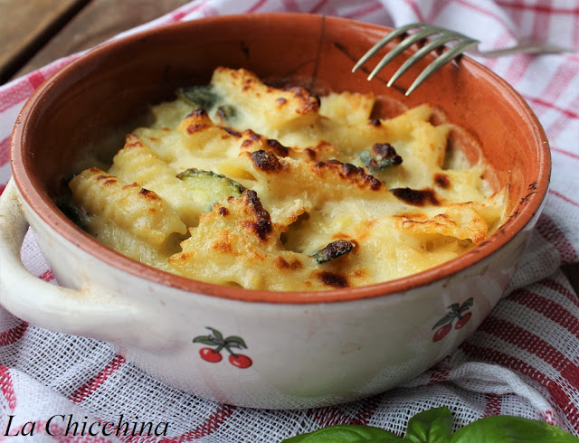 A volte capita di ritrovarsi con diversi pacchi di pasta da finire… Come utilizzarli? Oggi la soluzione nella mia cucina è stata questa buonissima pasta gratinata al forno, condita con besciamella allo stracchino e tanti cubetti di zucchine ripassati in padella.