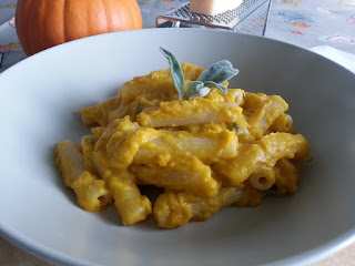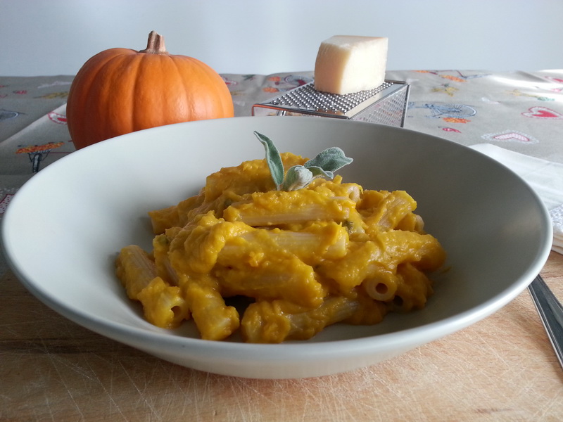 Appena la pasta è cotta al dente scolarla e versarla nella padella, amalgamandola bene con la crema di zucca caldissima. Servire a parte altro parmigiano grattugiato.