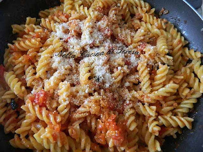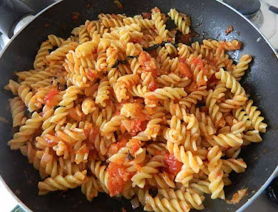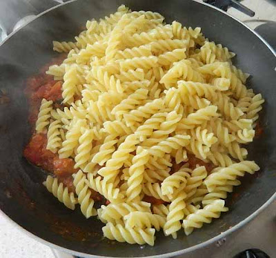 Intanto che cuoce il pomodoro, cuocere la pasta in acqua bollente salata. Scolare la pasta direttamente nel condimento pronto,