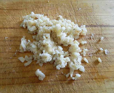 poi sminuzzarlo finemente fino ad ottenere un battuto, quasi una crema, quanto più si riesce a sminuzzarlo tanto più avremo un piatto gustoso.