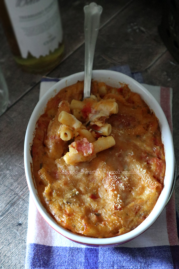 Ho un debole per la pasta e patate, in questo periodo è uno dei piatti che faccio spesso. Questa volta l’ho ripassata in forno con l’aggiunta del salame napoletano. Una vera coccola invernale.