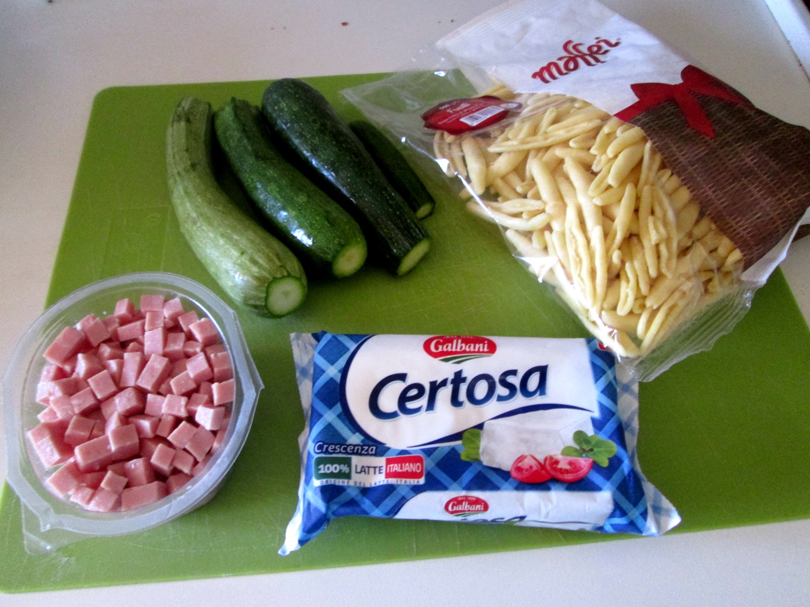 - nel mentre fate cuocere la pasta in abbondante acqua bollente e salata…quando sarà cotta, scolatela e aggiungetela al composto di zucchine e prosciutto cotto