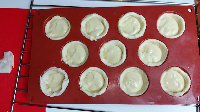 We made Pasteis de nata shaped as finger food, cooking them into a mini-muffin pan.