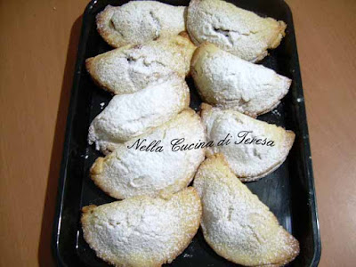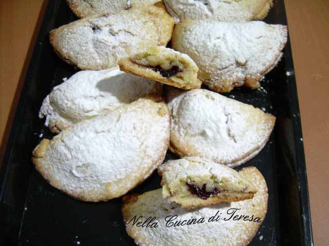 ancora a mezzaluna, non importa la forma, il gusto non cambia. La tradizione vuole che la pasta frolla sia preparata con lo strutto e stavolta anch’io ho voluto seguire la tradizione, di tanto in tanto possiamo anche fare uno strappo.