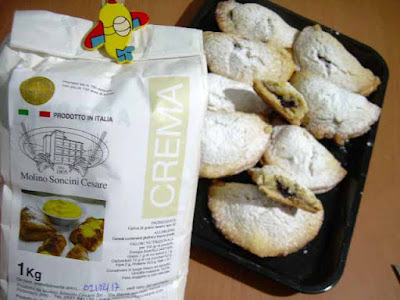 ancora a mezzaluna, non importa la forma, il gusto non cambia. La tradizione vuole che la pasta frolla sia preparata con lo strutto e stavolta anch’io ho voluto seguire la tradizione, di tanto in tanto possiamo anche fare uno strappo.