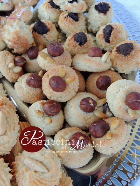 Molto semplici da impastare, i pasticcini alle mandorle possono essere fatti in forme diverse e si possono decorare con qualsiasi tipo di frutta candita, frutta secca o anche con del cioccolato fondente.