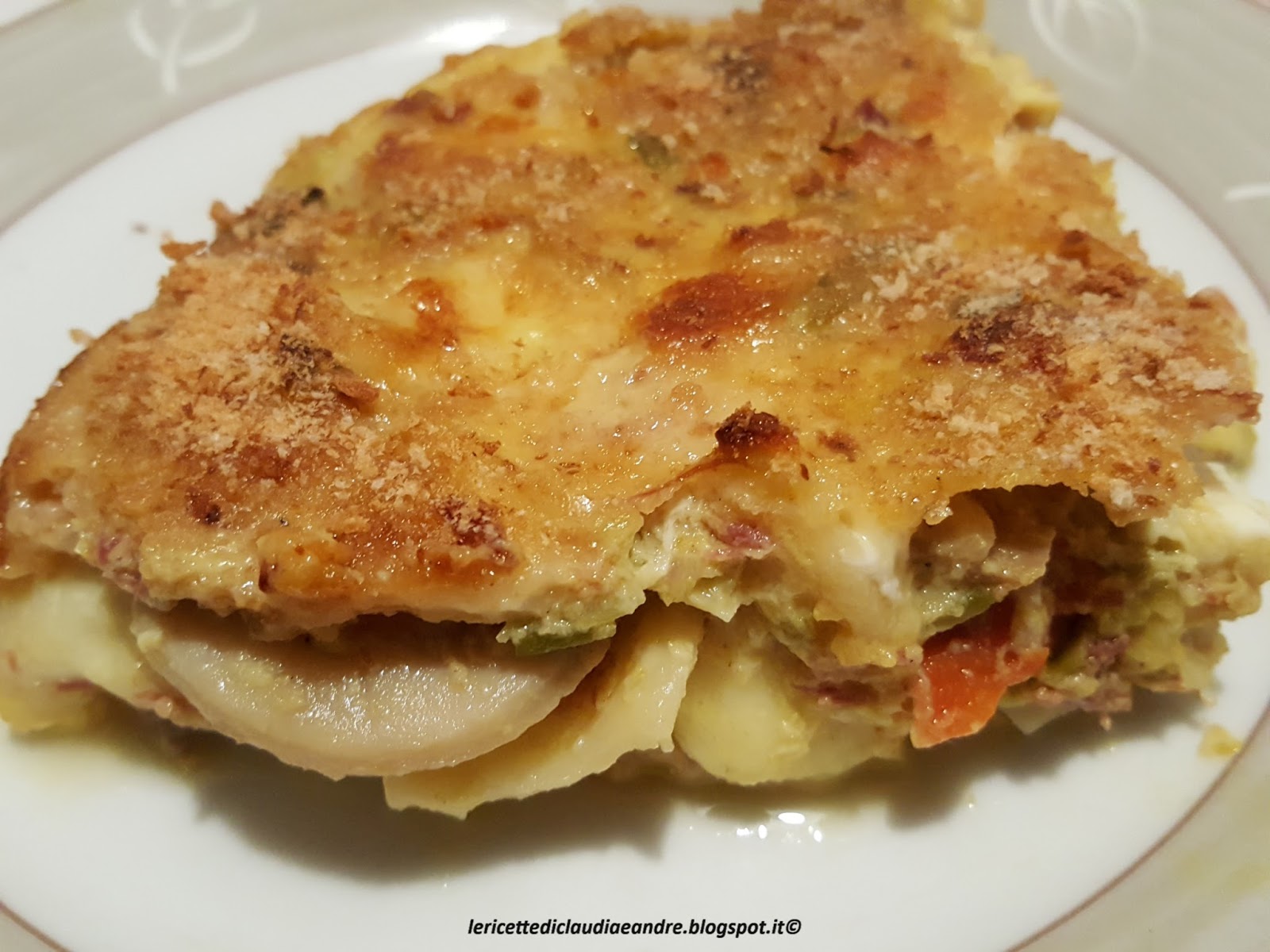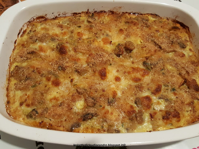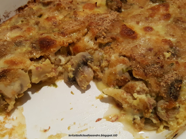 Pasticcio di funghi con cipollotti di tropea e simmenthal, ricetta di riciclo