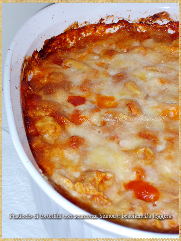 Ho condito i tortellini con un sugo leggero, poi ho unito una besciamella anch’essa leggera ed ho aggiunto la scamorza bianca, il tutto gratinato in forno.