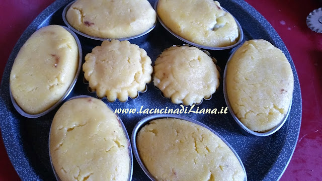 Riprendere l’impasto e stenderlo in una sfoglia abbastanza sottile, imburrare gli stampini per bene e rivestirli di pasta frolla, quindi farcirli bene con la crema e a piacere con amarene o nutella, richiudere bene con la pasta frolla.