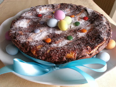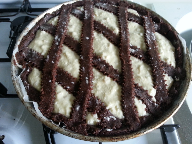 Trovo che la pastiera sia un dolce meraviglioso, per l’equilibrio tra la pasta frolla croccante e il morbido ripieno, per i suoi fragranti profumi e aromi. Però quest’anno ho voluto provarne una un po’ diversa: ho fatto la frolla al cacao e nel ripieno, invece dei classici canditi, ho messo dei tocchetti di cioccolato fondente. Per il resto mi sono attenuta alla ricetta tradizionale.