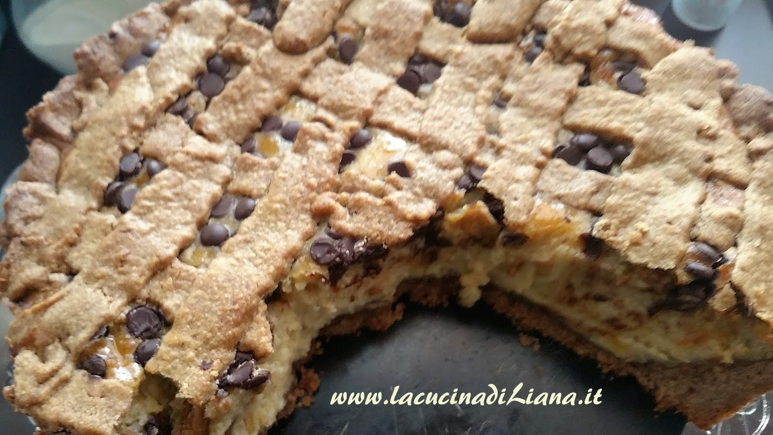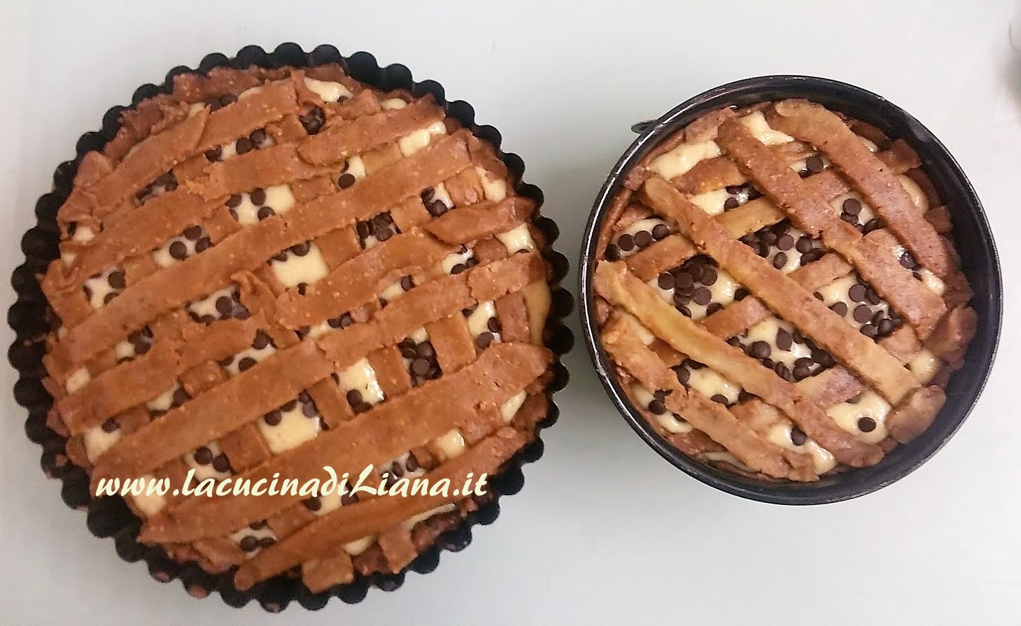 Si tratta di un guscio di frolla al cacao con farina e pasta di nocciole, con la classica crema al grano, ma arricchita di gocce di cioccolato fondente! Credetemi, è proprio una delizia!