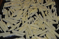 - Sbucciare le patate, tagliarle a bastoncini di 1/2 cm di spessore ed immergerle in acqua fredda per qualche minuto.