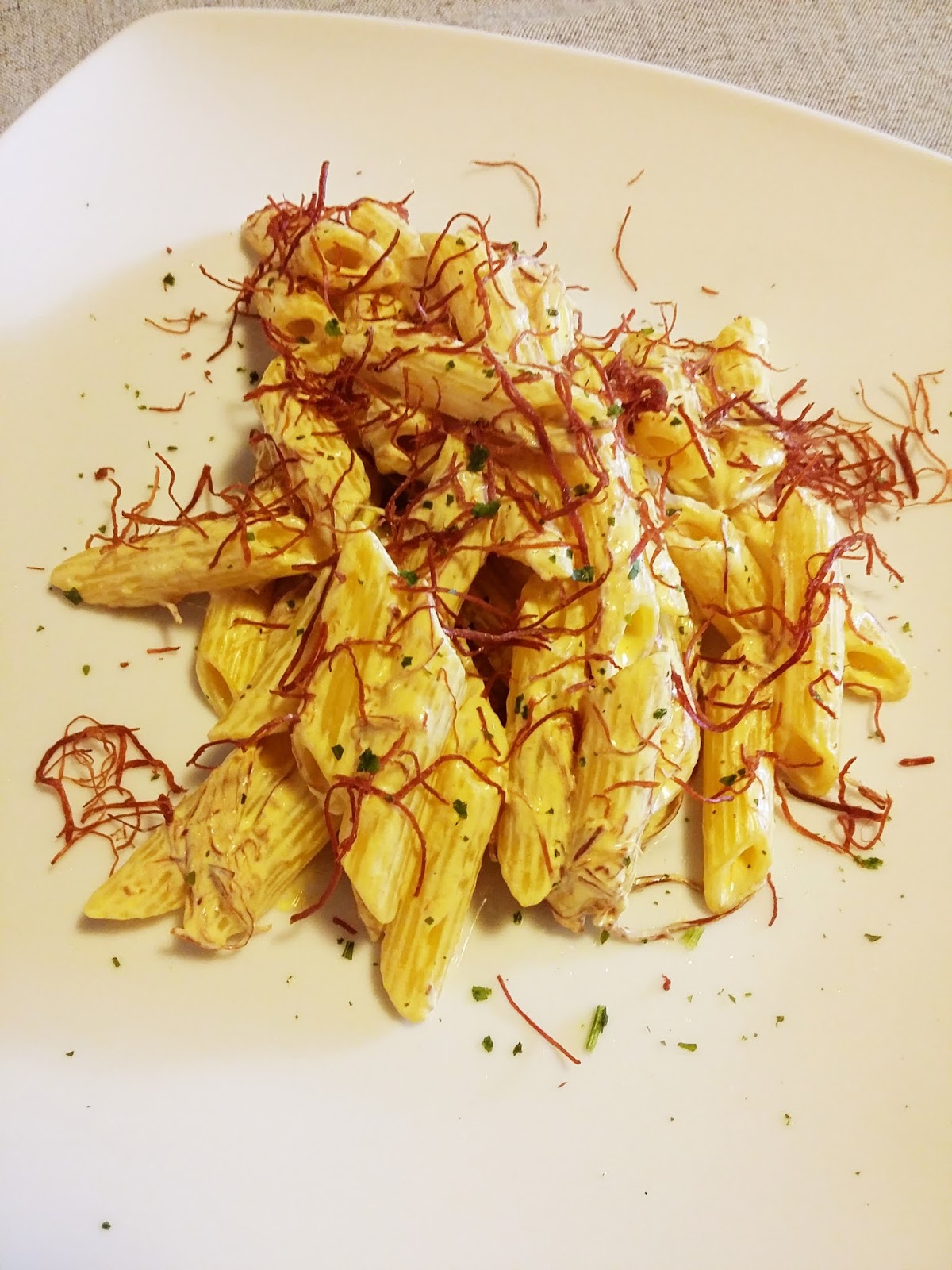 Questo piatto ha tre caratteristiche che mi piacciono molto: è davvero buono, è facile da preparare ed è molto profumato ed invitante. Lo zafferano, che di solito usiamo solo per i risotti, si sposa benissimo con gli sfilacci di cavallo e la panna. Oltretutto regala lo splendido colore dorato che vedete!