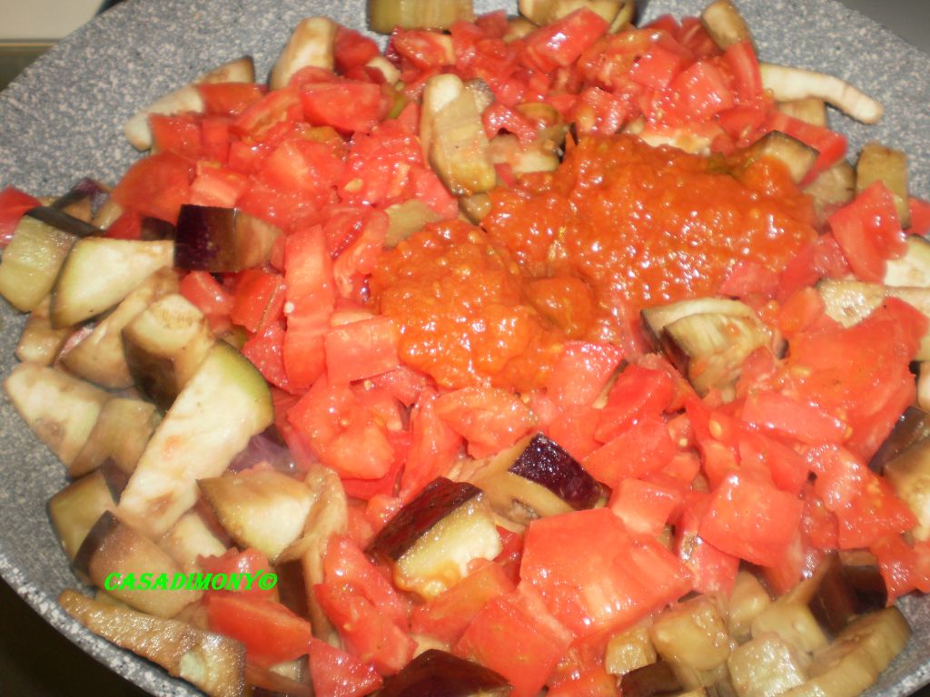 poi ho unito i pomodori tagliati a cubetti, un pochino di passata