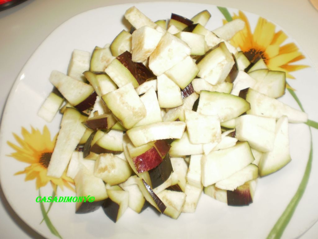 Per prima cosa ho tagliato la melanzana a pezzetti
