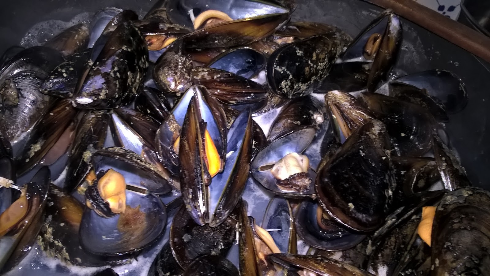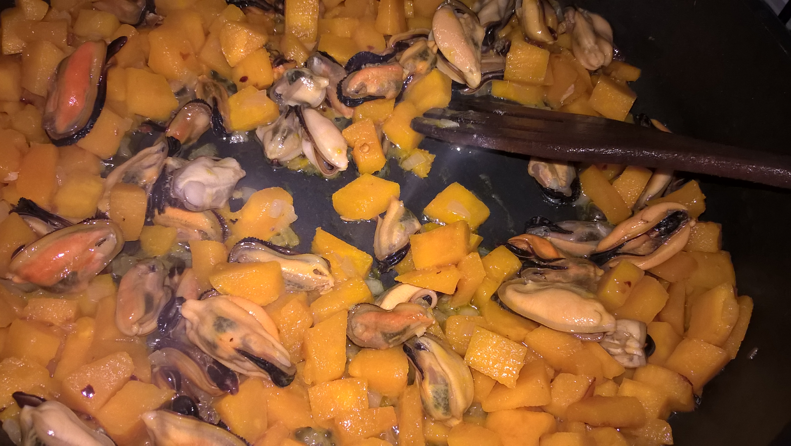 Aggiungete le cozze pulite e in ultimo completate con una manciata di prezzemolo tritato finemente.
