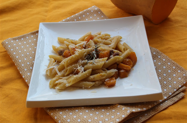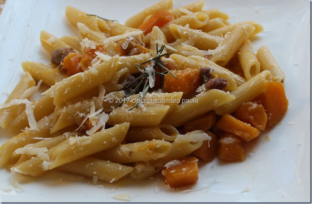 scolate la pasta e versatela nella padella con il sugo di zucca