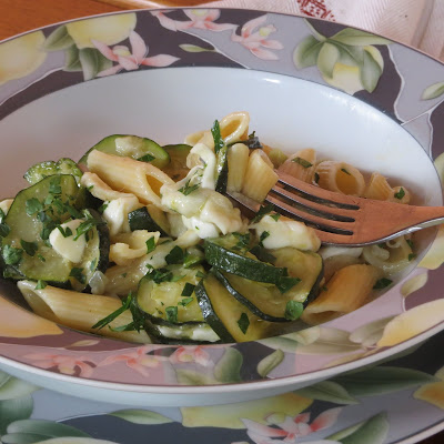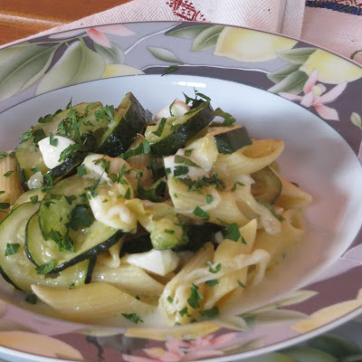Alla tradizionale pasta con le zucchine e mozzarella ho aggiunto il prezzemolo e ho scelto anzichè una mozzarella tradizionale quella di bufala e per renderla più fresca qualche foglia di menta fresca.