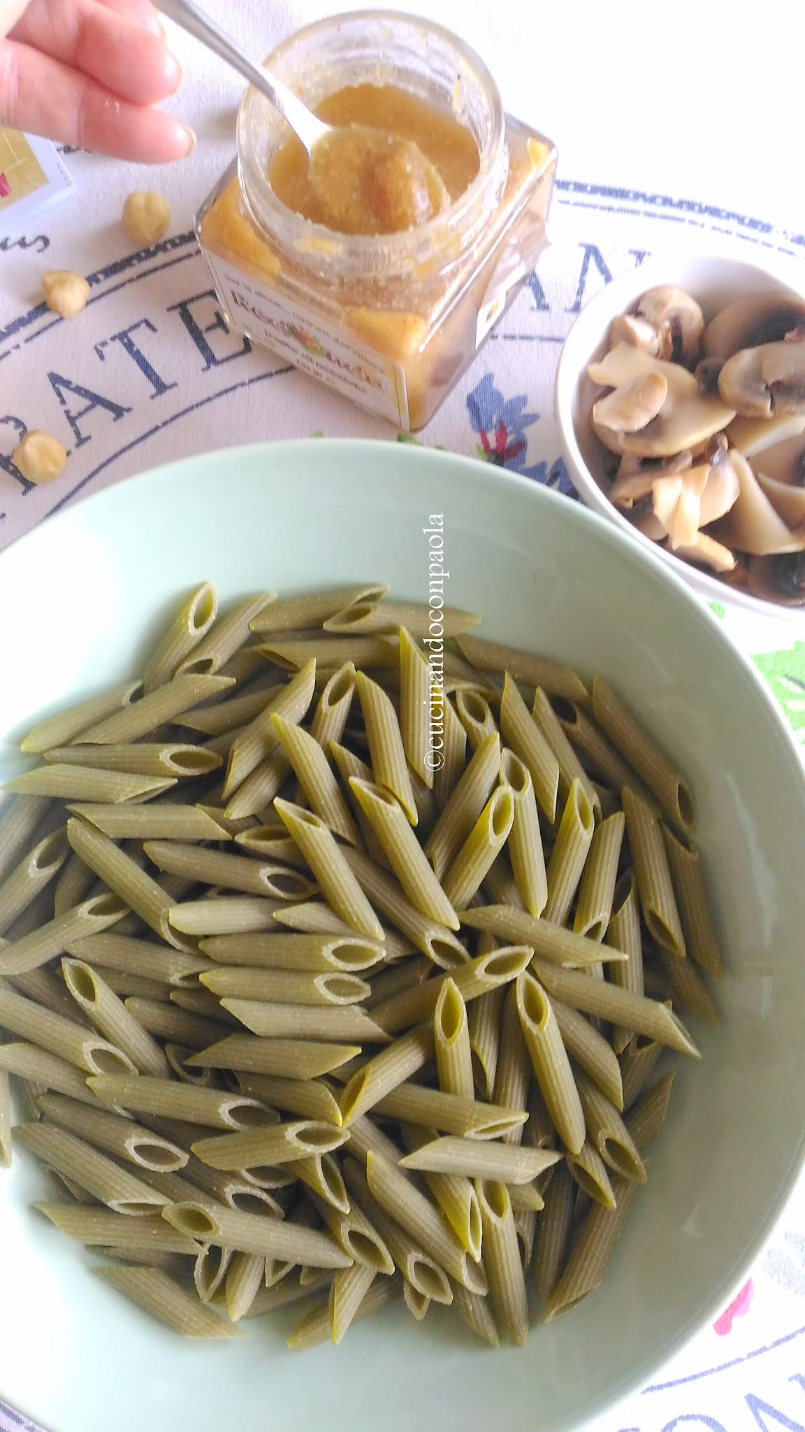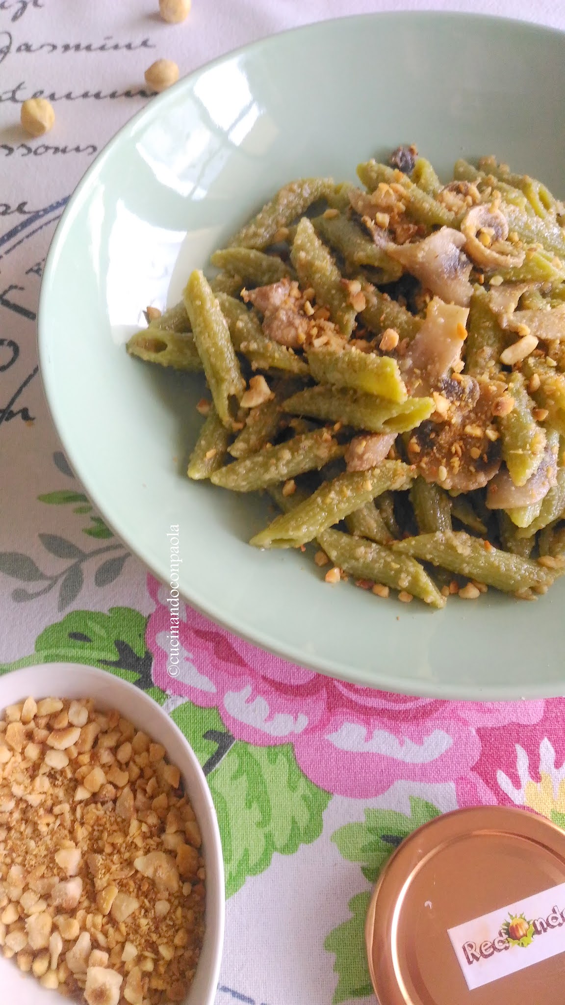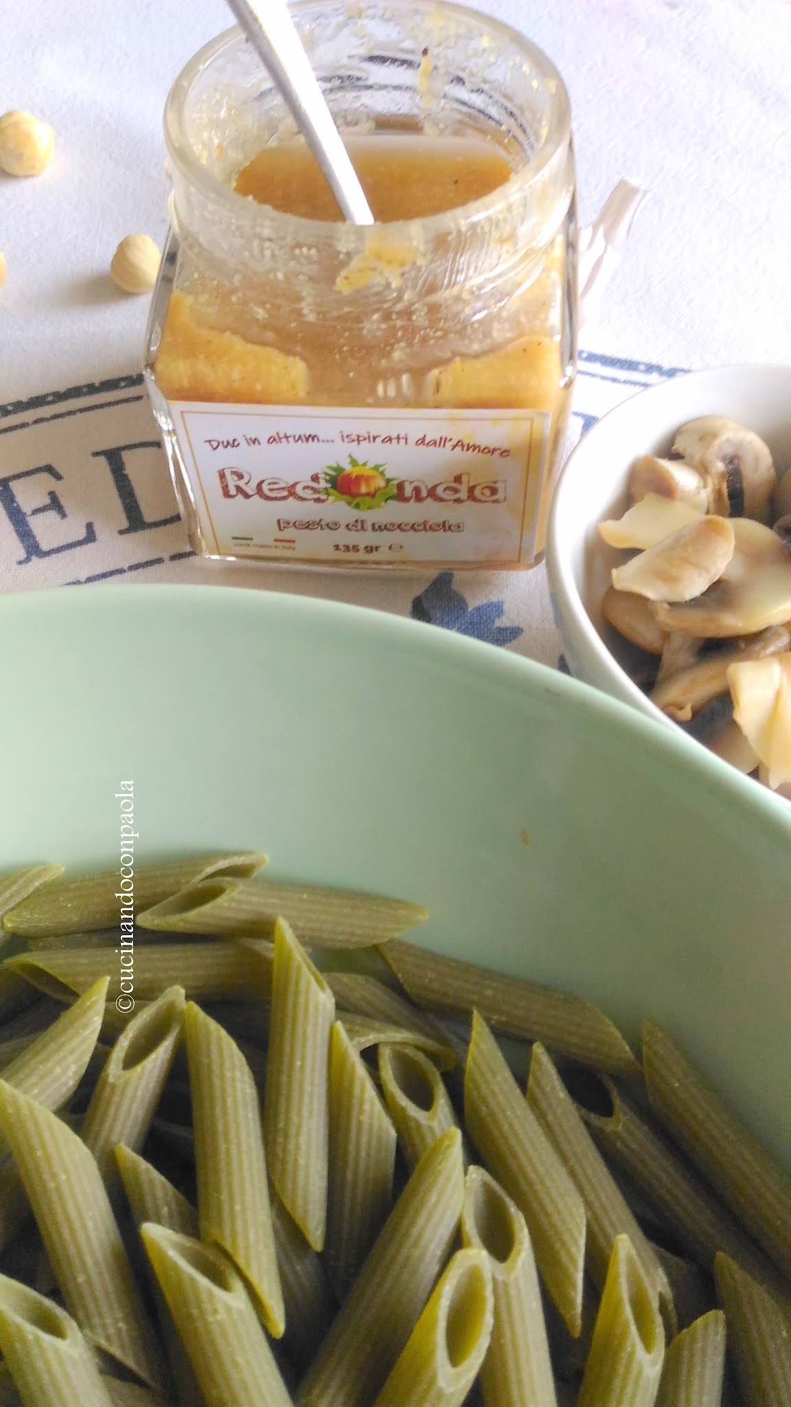 il Pesto di nocciole Redonda e i funghi champignon precedentemente cotti.