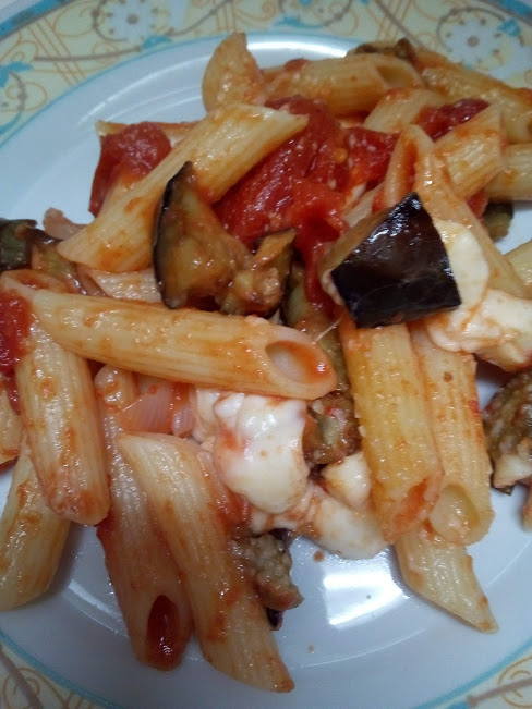 Nel frattempo preparate il sugo con polpa di pomodoro, un filo di olio e sale. Lasciate cuocere e a metà cottura versateci dentro le melanzane a tocchetti, fate insaporire per ulteriori 15 minuti.