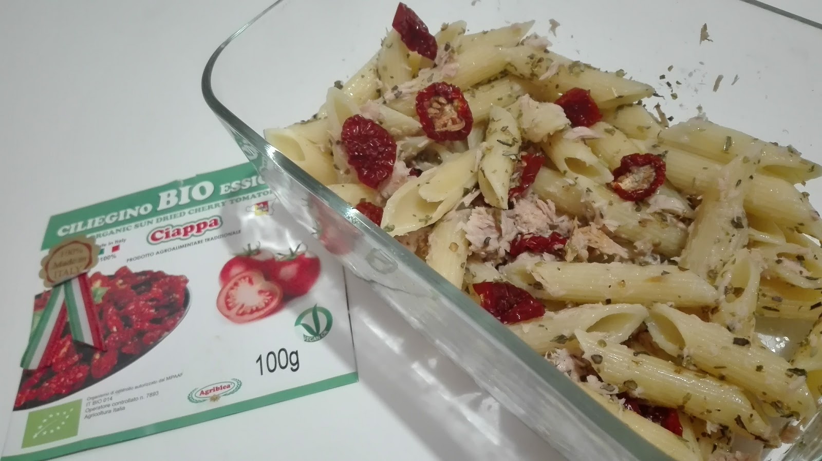 Nel frattempo cucinare il trancio di tonno tagliato a tocchetti in una padella antiaderente con un filo d’olio evo per circa una decina di minuti e aggiungere all’ultimo l’origano e i ciliegini bio essiccati AGRIBLEA tagliati a pezzetti.