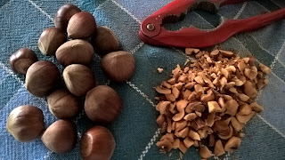 Sgusciate le nocciole, che avrete tostato in forno, e tritatele grossolanamente.
