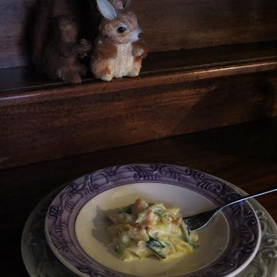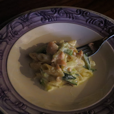 Scaldate in una casseruola un filo di olio, unite dopo averlo tritato lo scalogno e fatelo appassire nell’olio. Tagliate a fiammifero lo zucchino e mettetelo in padella, salatelo e rosolatelo per alcuni minuti, aggiungete due cucchiai di latte e portate a cottura. Stemperate la robbiola con alcuni cucchiai di latte per renderla più cremosa e versatela anch’essa in casseruola. Per ultimo anche il salmone e lasciate cuocere ancora per tre minuti.