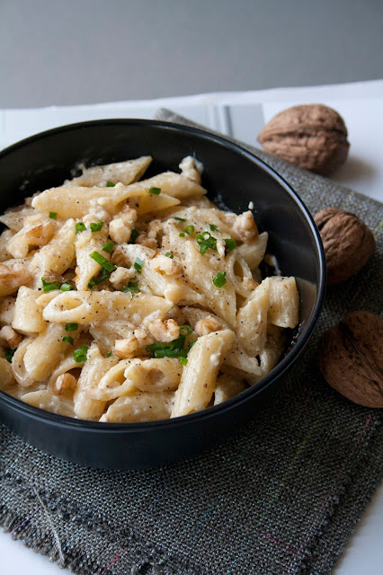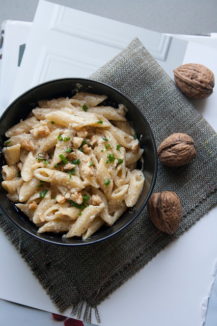Nel frattempo lessare la pasta in abbondante acqua salata (durante la cottura prelevare un paio di cucchiai di acqua di cottura e aggiungerla al condimento in modo da renderlo più cremoso), scolarla la pasta al dente e condirla con la salsa preparata precedentemente.