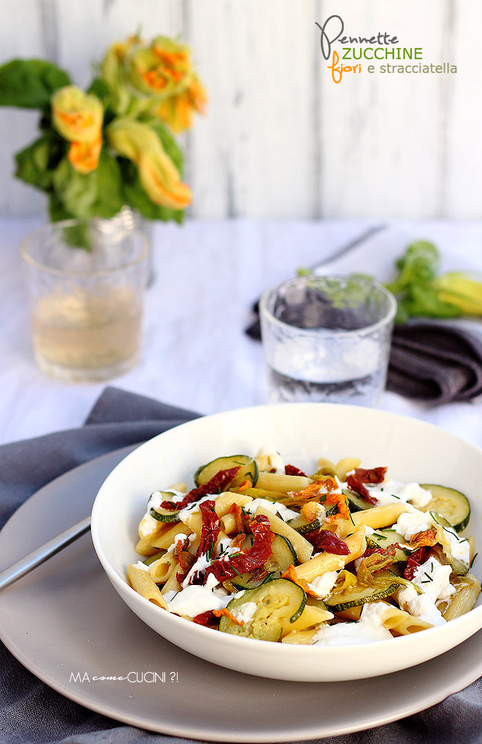 Dopo una settimana di pausa, ritorno con un altro piatto di pasta molto estivo, a base di zucchine e fiori che in questo periodo abbondano.