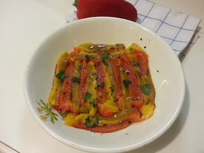 Questa ricetta è semplice e molto diffusa, probabilmente è il modo più comune di preparare i peperoni, ma per quei pochi che non sanno come si fa, ecco la mia ricetta. È un lavoro non proprio brevissimo ma non presenta difficoltà e comunque il risultato ripaga abbondantemente! Il segreto per dei peperoni memorabili è usare un ottimo olio extra vergine di oliva. Oltre che un ottimo contorno per carni lesse e arrosto, questi peperoni possono anche arricchire un classico antipasto all’italiana.