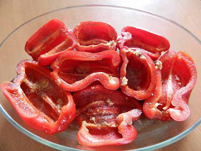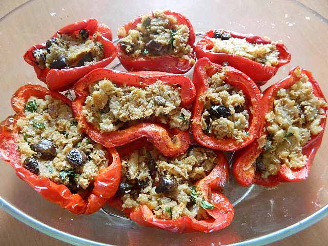 Farcire i peperoni con questo composto, condire con un filo d’olio